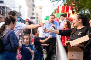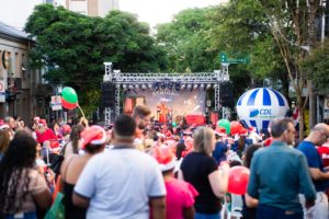 O Natal Iluminado da CDL Caxias aconteceu no dia 11 de dezembro e proporcionou momentos especiais para toda a família. O evento contou com a chegada do Papai Noel, um espetáculo teatral e um show musical Rock Christmas com Rafa Schuler. Para tornar a celebração ainda mais completa, houve a distribuição de balas, algodão-doce, pipoca, picolés, balões e toucas natalinas, garantindo alegria e diversão para todos os presentes.